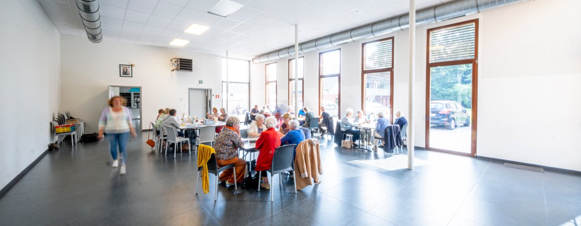 Onze ruime, lichte zaal (13 op 9 meter) biedt talloze mogelijkheden voor vergaderingen, feesten of diners. De zaal is volledig uitgerust met (sta)tafels, stoelen, frigo's en heeft veel natuurlijke lichtinval. De aangrenzende keuken* is ideaal om maaltijden te bereiden of op te warmen, voorzien van alle nodige toestellen en keukenmateriaal. Toiletten zijn uiteraard aanwezig.